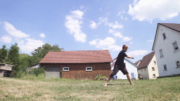 This transition is called carrythrough. You land on one foot, re-adjust and then you take off again from the same foot. So land your Aerial in Semi as much as you can, readjust your landing foot slightly and take off into the Tornado Kick. In a carrythrough the readjustment step usually involves a small hop. Here I'm just changing my foot position on the ground before I take off again. It feels more similar to a real swingthrough. Take your time between both tricks and then reduce the contact time more and more as you get better.