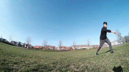 You don’t have to aim the Roundkick very high, if you’re not that flexible. Aiming it lower can help you to stay more horizontal with your upper body. Spotting the target on both kicks will make the kicks more obvious.