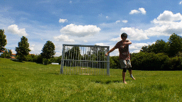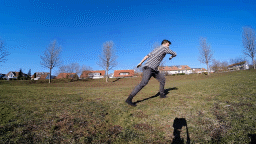 Now you need to put the Parafuso into your Raiz. Setup the same way as you would for a Raiz and aim for height. Try to spot the floor throughout the whole trick, just like you would for the Raiz. Swing your non jumping leg as high and as powerful as you can upwards. As soon as you reach the peak of your swing, bring both legs together and drive them into the spot where you are looking. If you already know how to Sideswipe, that could help, as this is a very similar motion. Bend your legs a bit as you land to absorb some of the impact.