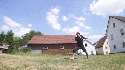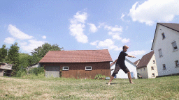 This transition is called carrythrough. You land on one foot, re-adjust and then you take off again from the same foot. So land your Aerial in Semi as much as you can, readjust your landing foot slightly and take off into the Tornado Kick. In a carrythrough the readjustment step usually involves a small hop. Here I'm just changing my foot position on the ground before I take off again. It feels more similar to a real swingthrough. Take your time between both tricks and then reduce the contact time more and more as you get better.