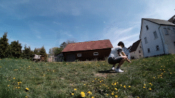 The Macaco is a backhandspring from a squatting position. It flips slightly over the side. Imagine trying to enter a roundoff from a squat. This is a great move to slowly get over backflip fear and to work your way up to a backhandspring.