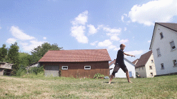 This transition is called carrythrough. You land on one foot, re-adjust and then you take off again from the same foot. So land your Aerial in Semi as much as you can, readjust your landing foot slightly and take off into the Tornado Kick. In a carrythrough the readjustment step usually involves a small hop. Here I'm just changing my foot position on the ground before I take off again. It feels more similar to a real swingthrough. Take your time between both tricks and then reduce the contact time more and more as you get better.